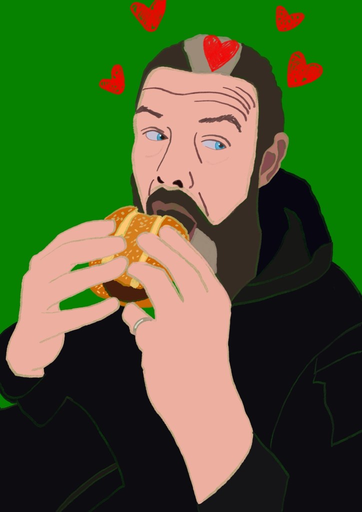 He was so happy with that burger! So I memorialised it in today’s doodle. The fact that watermelon coolers have been discontinued really is devastating! Watermelon cooler was my favourite drink from any fast food place. It really was in my opinion, the best drink out there. Hopefully KFC will see the error of their ways, return it and make it permanent.